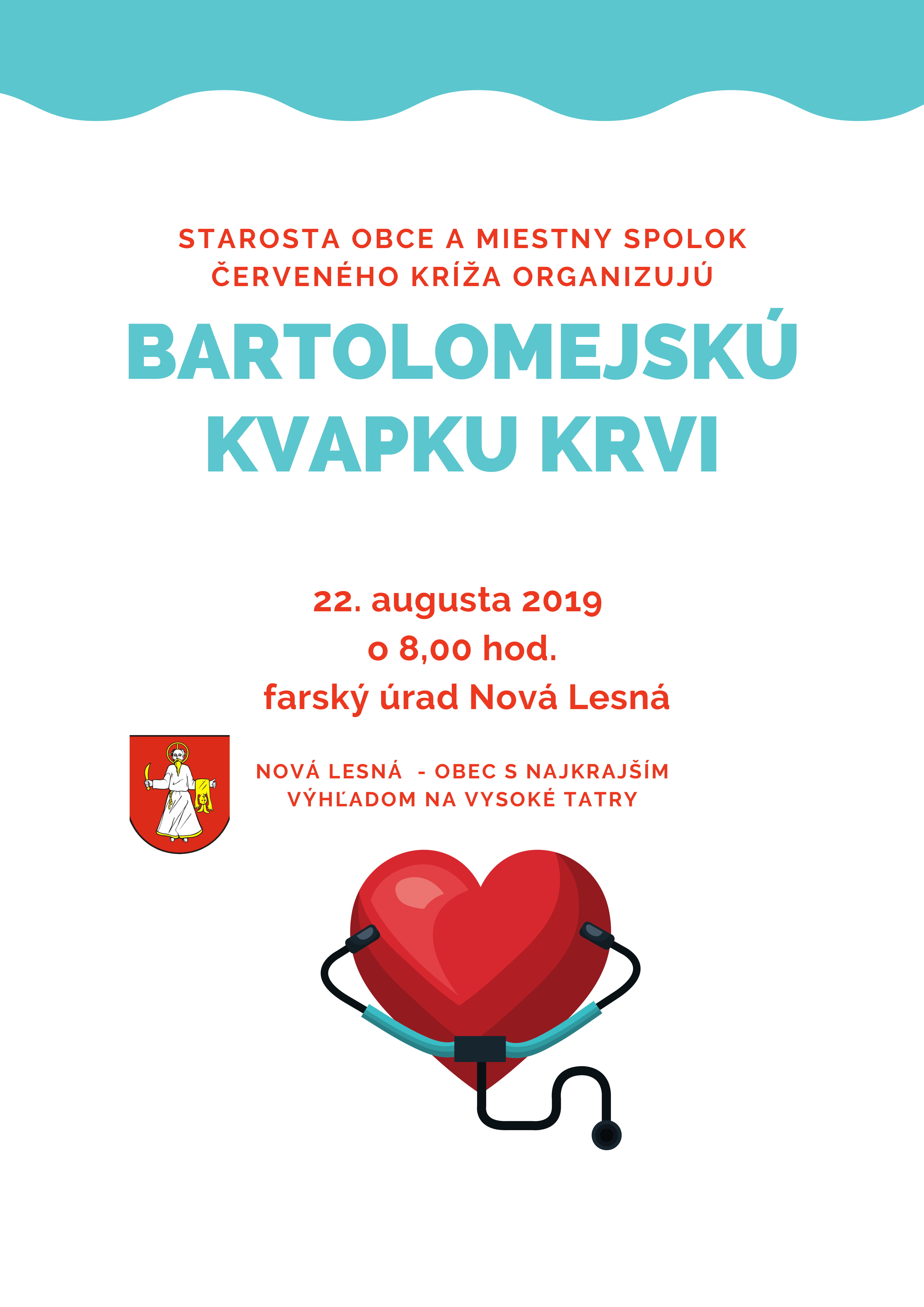 Starosta obce a Miestny spolok Červeného kríža pozývajú na Bartolomejskú kvapku krvi.